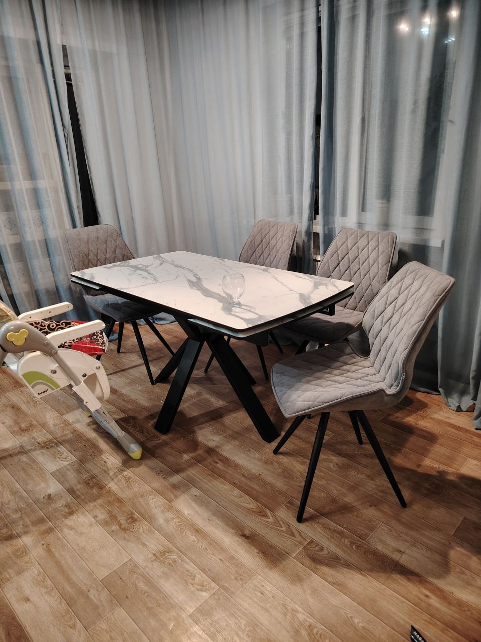 Да. Мы сможем изготовить стулья на заказ в вашем материале. Так же в нашей коллекции есть стулья к которым можно изготовить чулки на ножки.