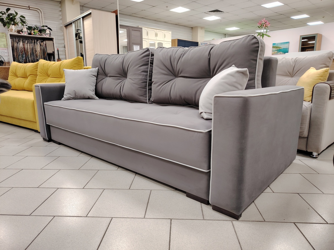Диван «Милан-2″ с кантом– это диван с  комфортным спальным местом. Диван можно купить с выставочного зала или изготовить на заказ. Наши специалисты помогут с выбором тканей и материалов, возможно изготовление по вашему дизайну и размерам.