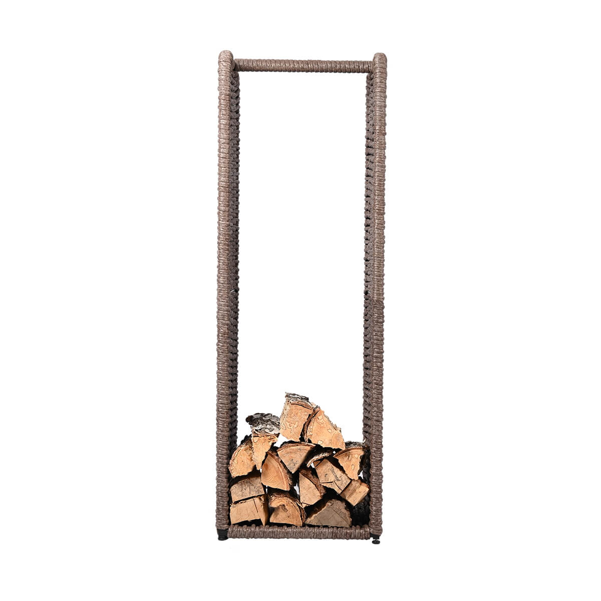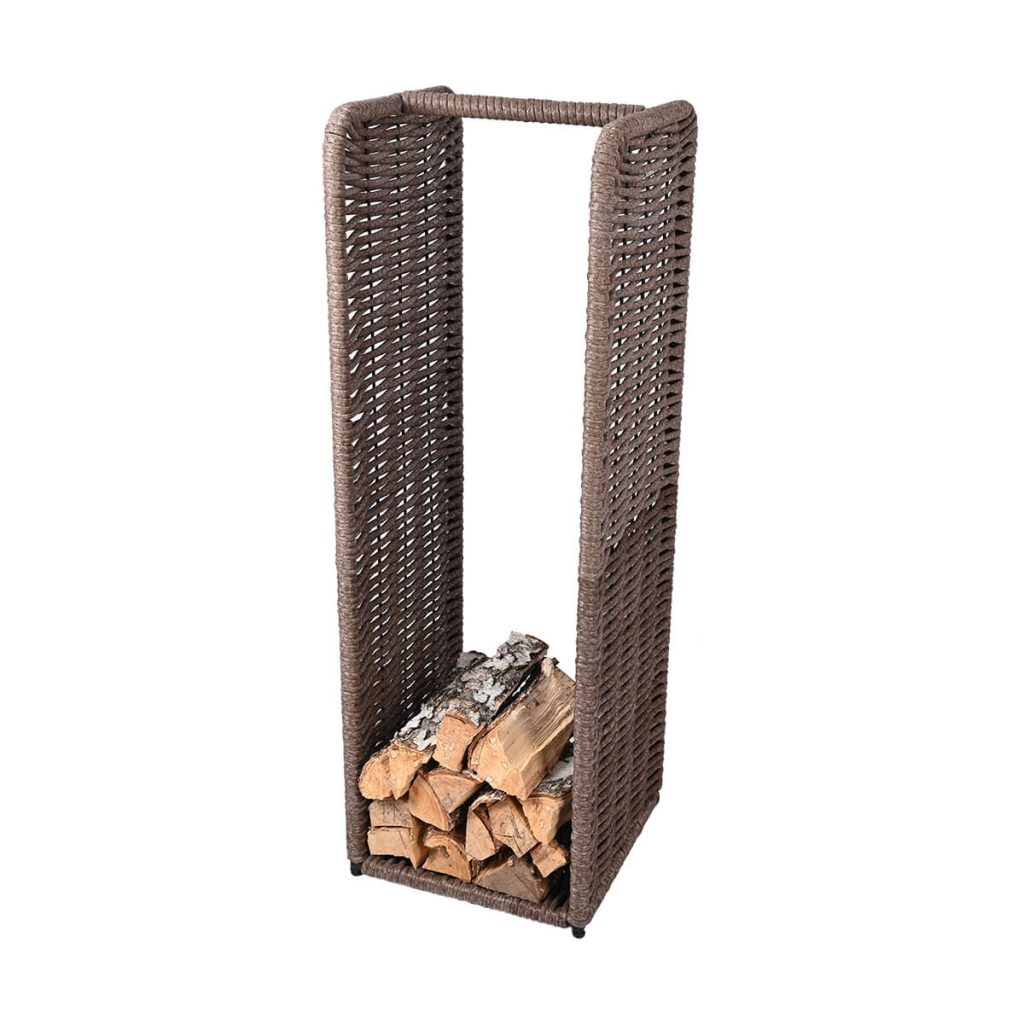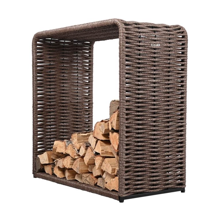 Дровник выполнен из сварного металлического каркаса, окрашен полимерным покрытием и заплетен полимерной лозой DeckWOOD диаметром 12 мм. Допускается эксплуатация при температурах от -30 до +45°С. Внешний вид натурального, природного материала. Украсит и поможет содержать в порядке каминную и мангальную зону.