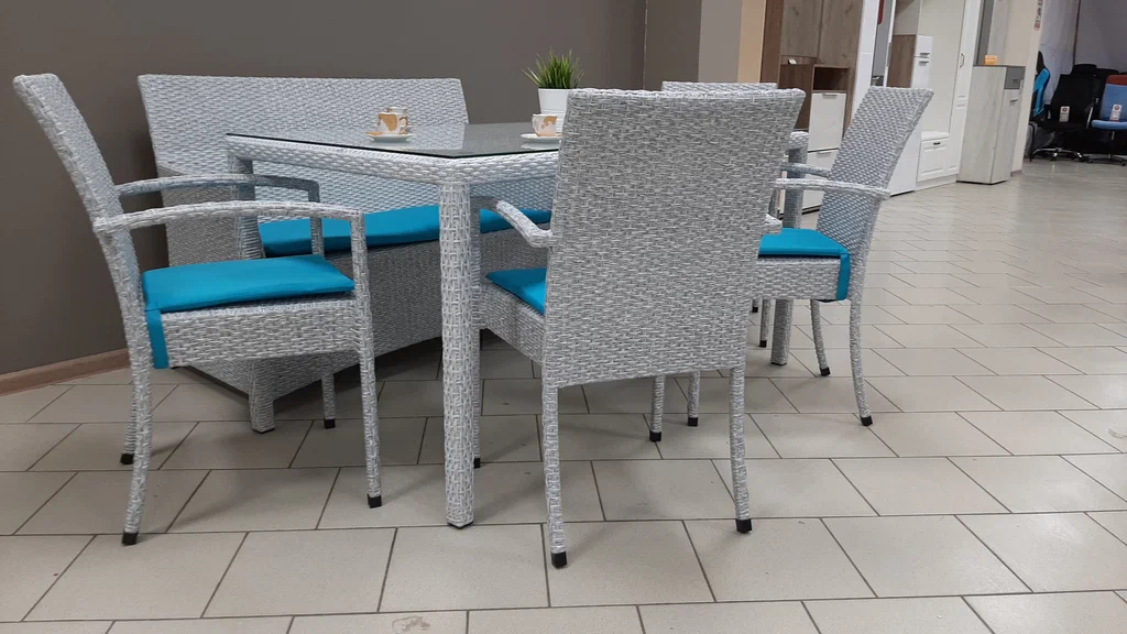 - Материал комплекта — искусственный ротанг (ручного плетения)