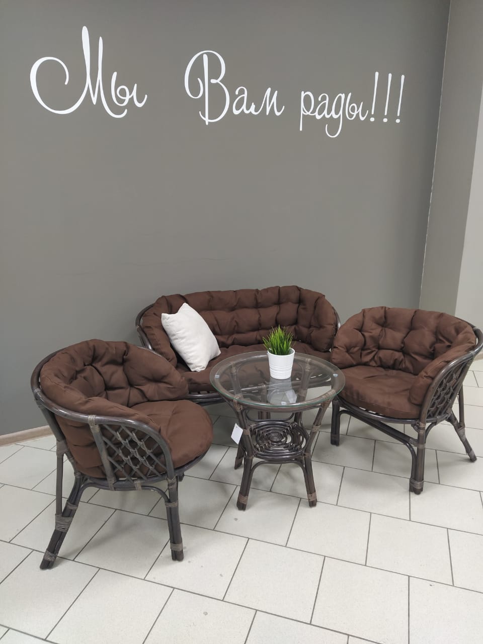 В комплект входят подушки для кресел и дивана, ткань твил. Стекло толщиной 5 мм, на присосках.