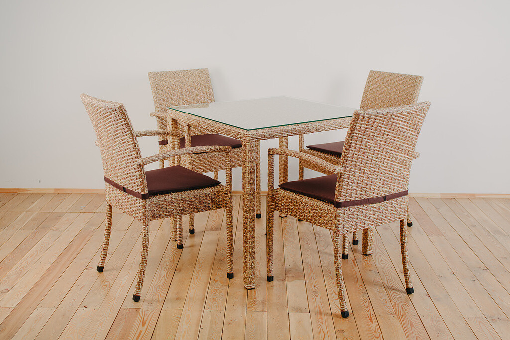 - Материал комплекта — искусственный ротанг (ручного плетения)