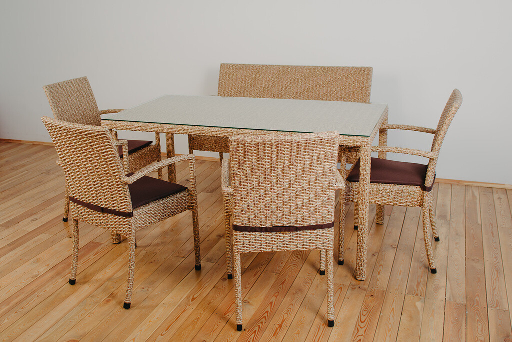 - Материал комплекта — искусственный ротанг (ручного плетения)