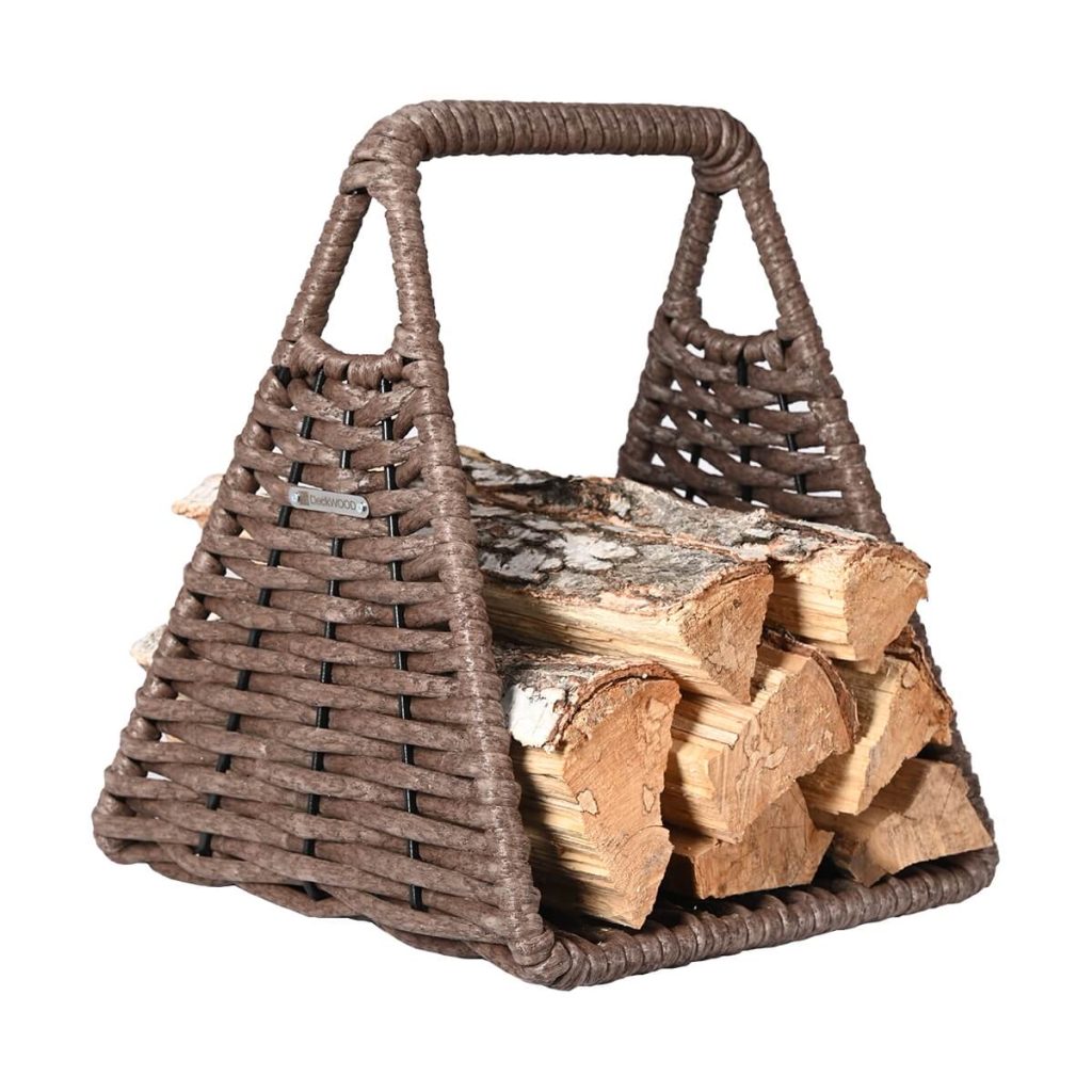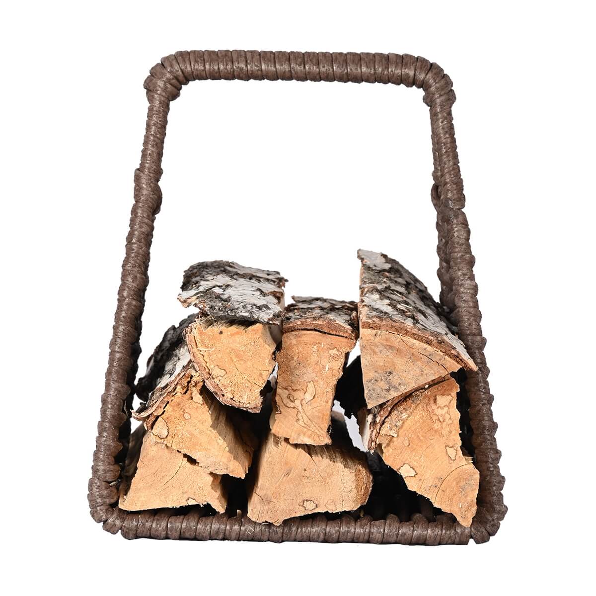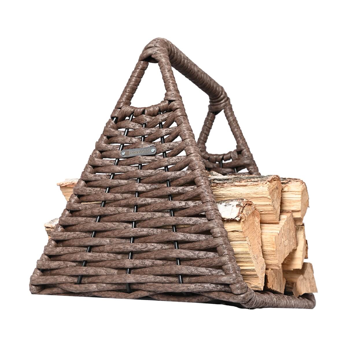 Дровник выполнен из сварного металлического каркаса, окрашен полимерным покрытием и заплетен полимерной лозой DeckWOOD диаметром 12 мм. Допускается эксплуатация при температурах от -30 до +45°С. Внешний вид натурального, природного материала. Украсит и поможет содержать в порядке каминную и мангальную зону, станет декоративным элементом атмосферы загородного дома, дачи, бани или обстановки в фотостудии.