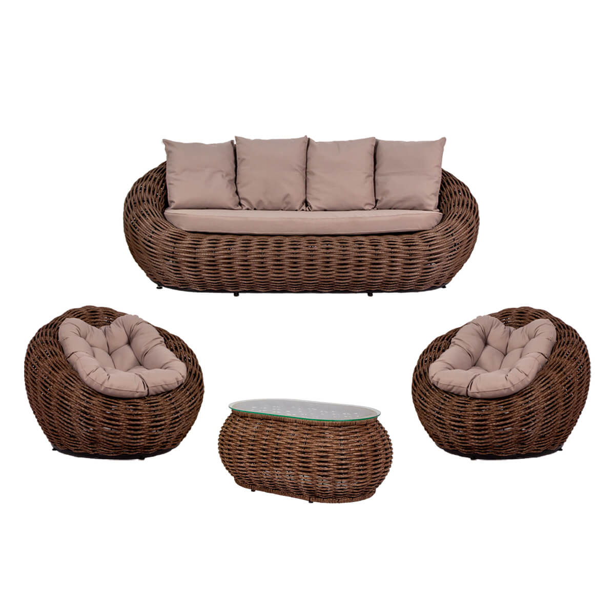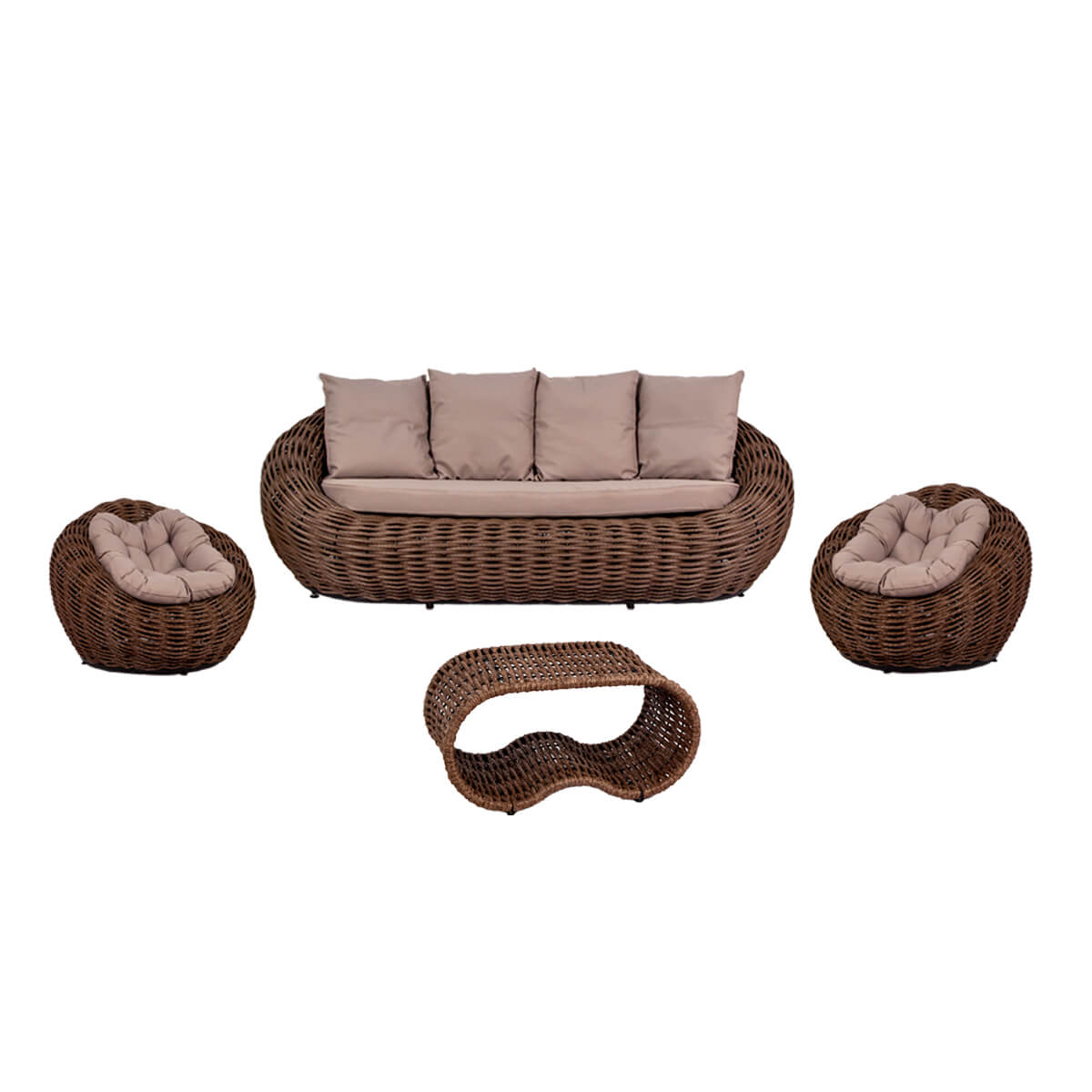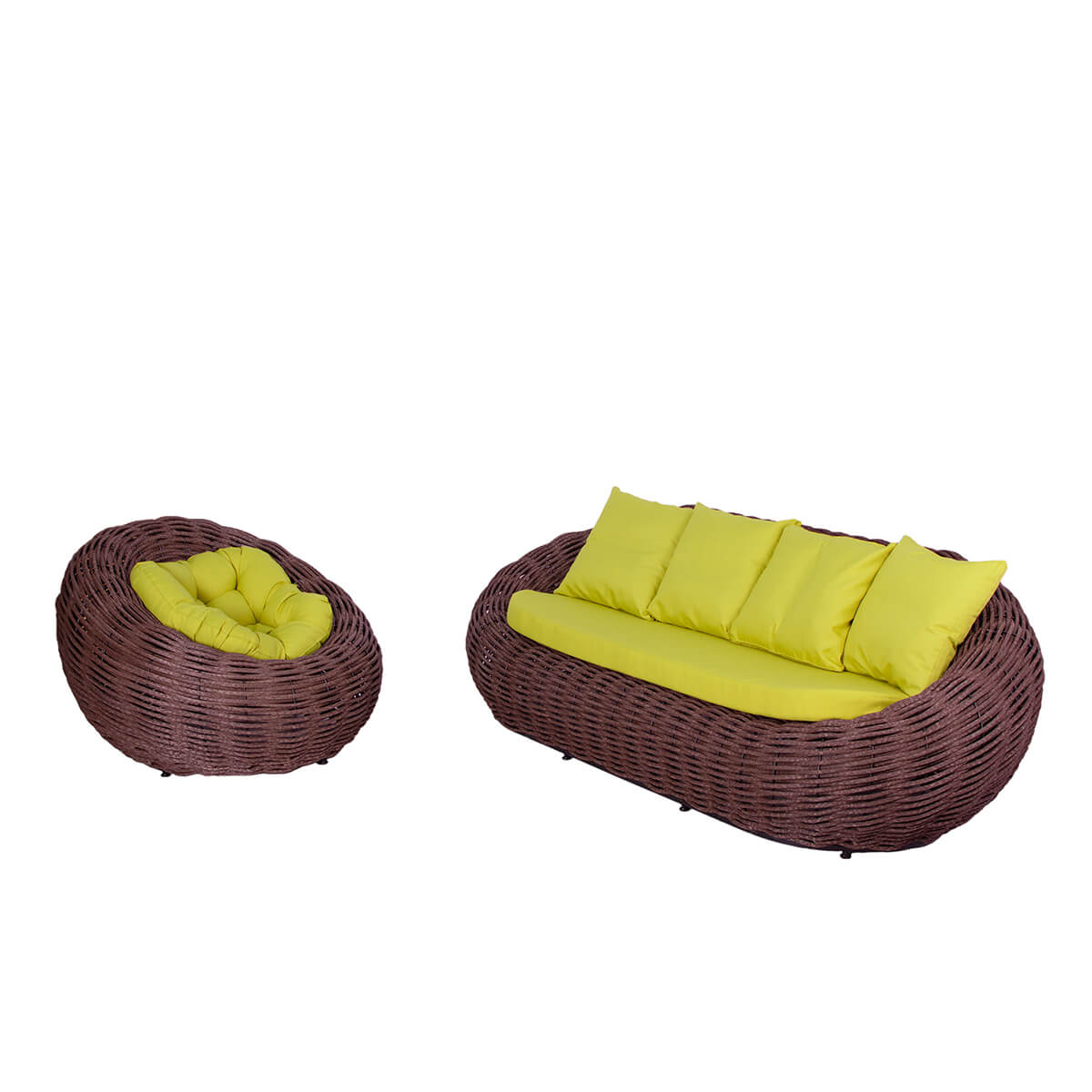 Мебель производится в различных цветовых сочетаниях лозы и подушек.