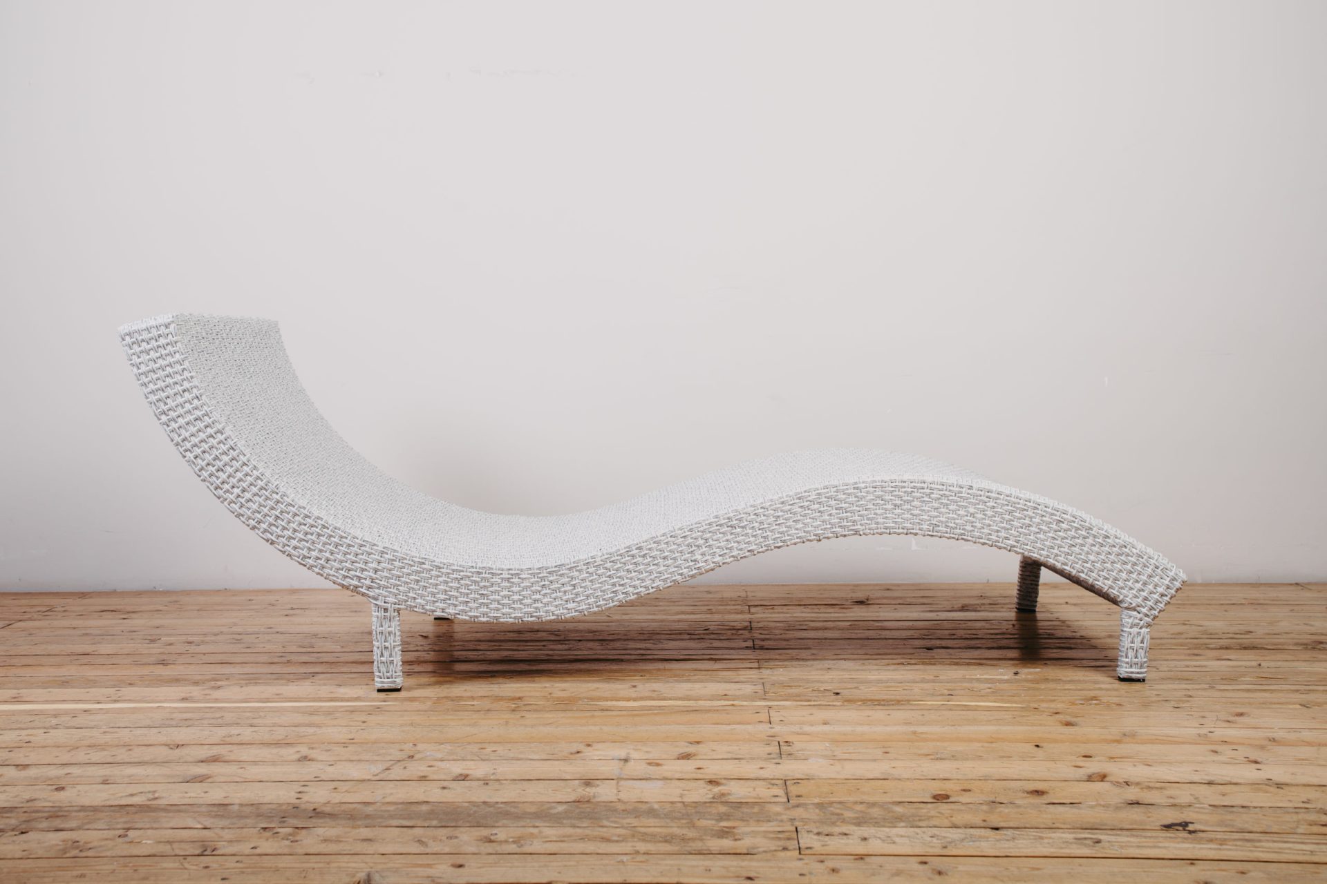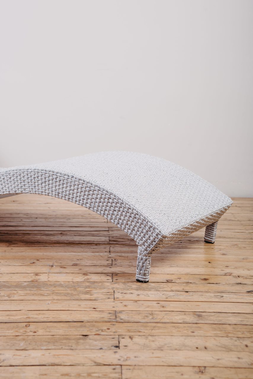 Удобный и прочный плетеный шезлонг из ротанга. Металлический каркас, материал плетения — искусственный ротанг.