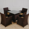 Металлический каркас, материал плетения — искусственный ротанг. Столешница – стекло 8 мм.