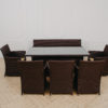 Искусственный ротанг — практичный и красивый материал. Мебель не боится влажности, солнечных лучей и перепада температур. Столешница выполнена из прочного стекла.